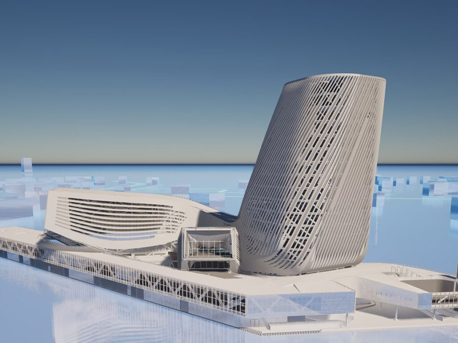高雄港旅運中心主塔樓高達15層樓,其中1至2樓為國際旅客出入境大廳,提供22座人工通關櫃台、4座雙向人臉辨識系統、自動退稅機台、AI即時翻譯機、自動外幣兌換機等多項智能化服務,並設有免稅商店、美食街,讓國際旅客享受便捷的入境體驗。